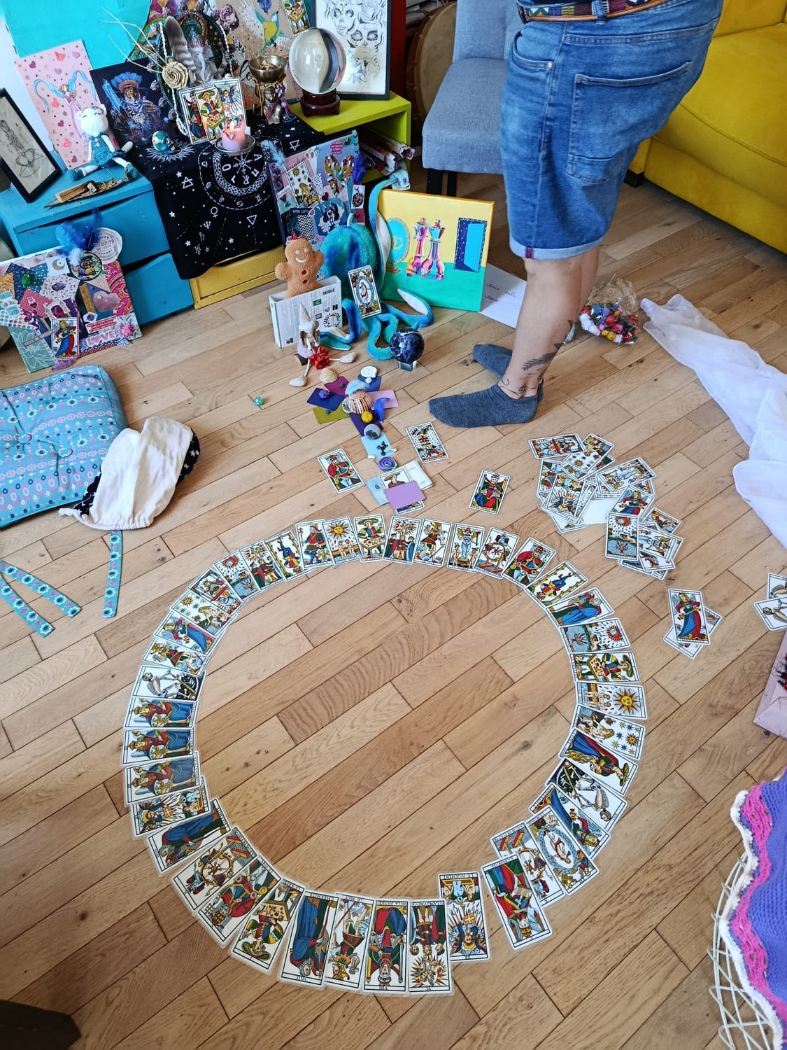 Une séance dure environ 1h30 à 2h (le temps nécessaire pour aller au bout du jeu et de ton intention).